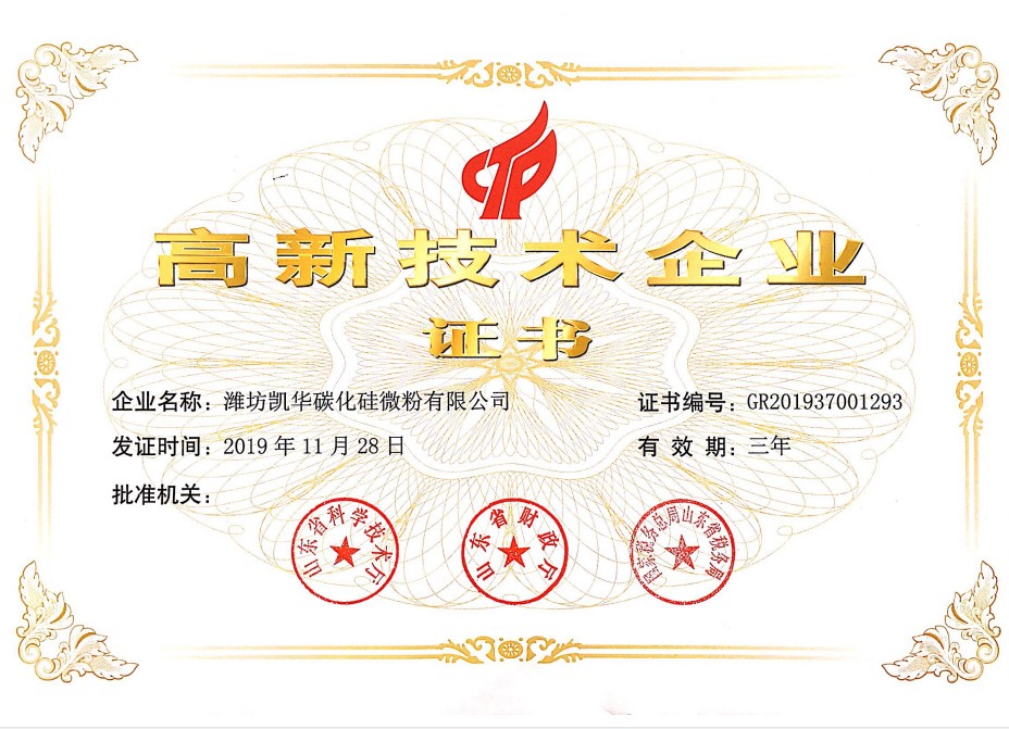 濰坊凱華碳化硅微粉有限公司成立于2002年,國家高新技術企業(yè),公司占地40畝,標準廠房19000平方,辦公樓、研發(fā)處2000平方,年生產(chǎn)能力3萬噸。一直從事陶瓷級微粉的生產(chǎn)銷售,所生產(chǎn)的超細碳化硅微粉具有純度高、粒形好、穩(wěn)定性強等特點,主要用于反應燒結(jié)、無壓燒結(jié)、硅碳棒新工藝、重結(jié)晶燒結(jié)、蜂窩陶瓷、機車制動裝置、研磨拋光、金屬防腐表面噴涂、納米隔熱保溫材料等領域。標準產(chǎn)品有:F240、F1200、W40、W28、W20、W14、W10、W7、W5、W3.5、 W2.5、W2、W1.5、W0.5、5S、D3E、100F、RS07、RS100及整形高密度系列綠碳化硅微粉......